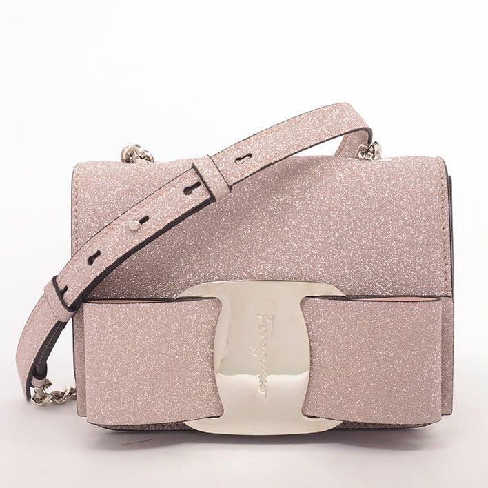 サルヴァトーレ フェラガモ チェーンショルダー リボン 斜め掛け シルバー金具 ヴァラ レディース【ショルダーバッグ】