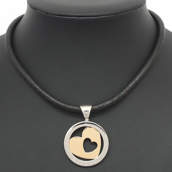 送料無料 / BVLGARI ブルガリ トンドハート レザー チョーカー K18YG/ステンレススチール【ペンダント】【ジュエリー】