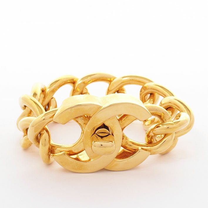 送料無料 / CHANEL / レディース シャネル ココマーク ターンロック ワイドチェーン CC 【ブレスレット】【ジュエリー】| 中古