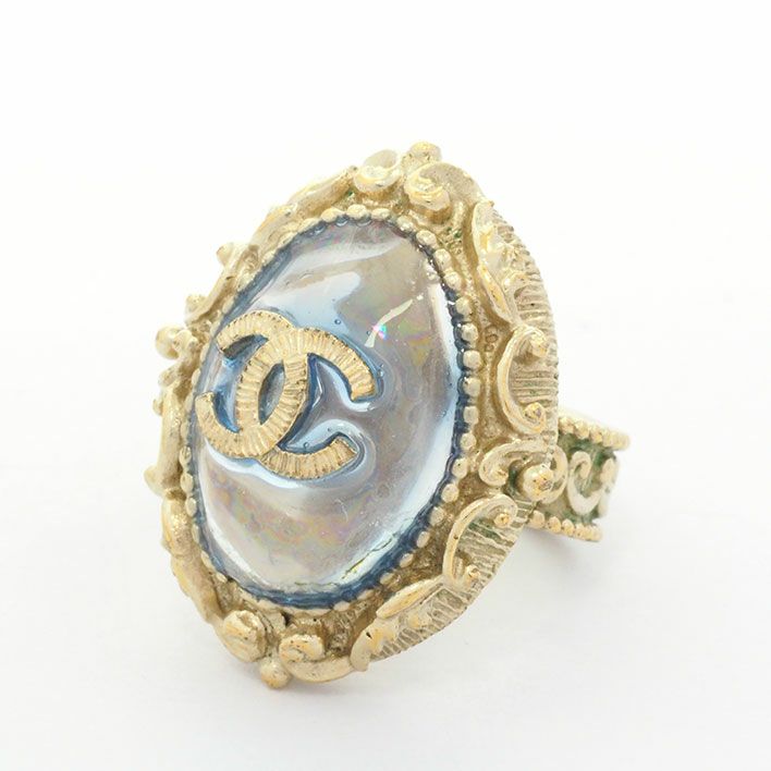 送料無料 / CHANEL / レディース シャネル 指輪 ココマーク 水色グリポワ風 ボタニカルレリーフ【指輪】| 中古