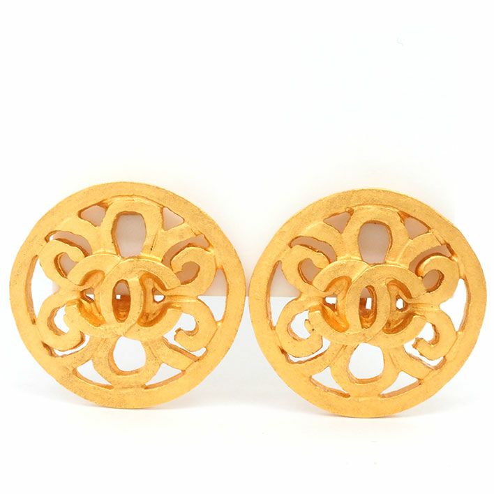 送料無料 / CHANEL / レディース シャネル ココマーク 透かし模様 マットゴールドカラー クリップ式 【イヤリング】【ジュエリー】| 中古
