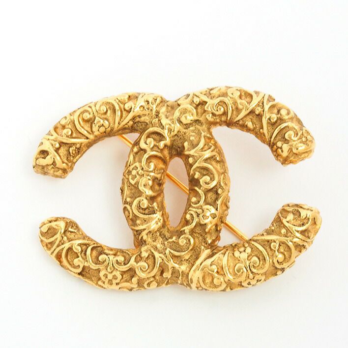 送料無料 / CHANEL シャネル ココマーク アラベスク柄 テクスチャー 回転ピンタイプ【ブローチ】【ジュエリー】| 中古