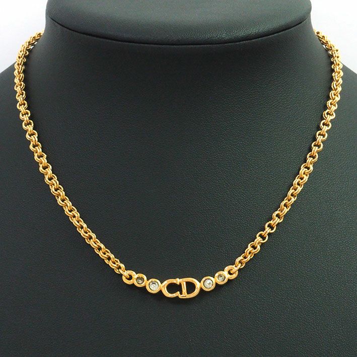 送料無料 / Christian Dior クリスチャン ディオール CDロゴ ベゼルセットビジュー カーブ【ネックレス】【ジュエリー】