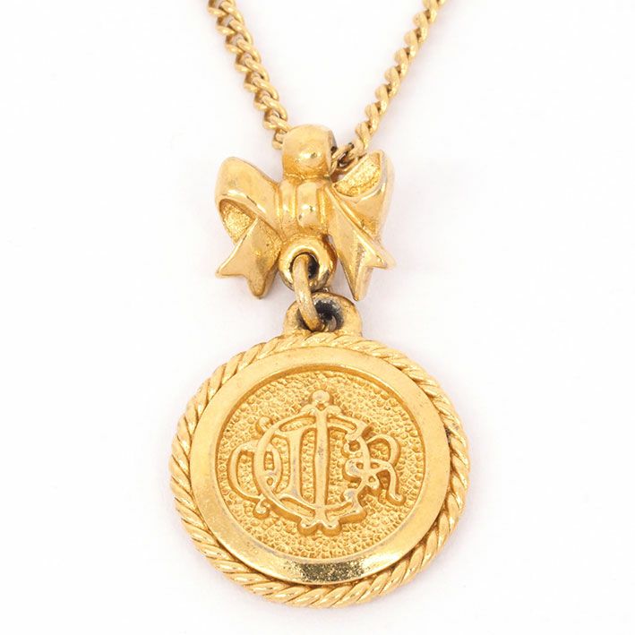 送料無料 / Christian Dior クリスチャン ディオール ヴィンテージロゴ リボンモチーフ ゴールドカラー【ペンダント】【ジュエリー】