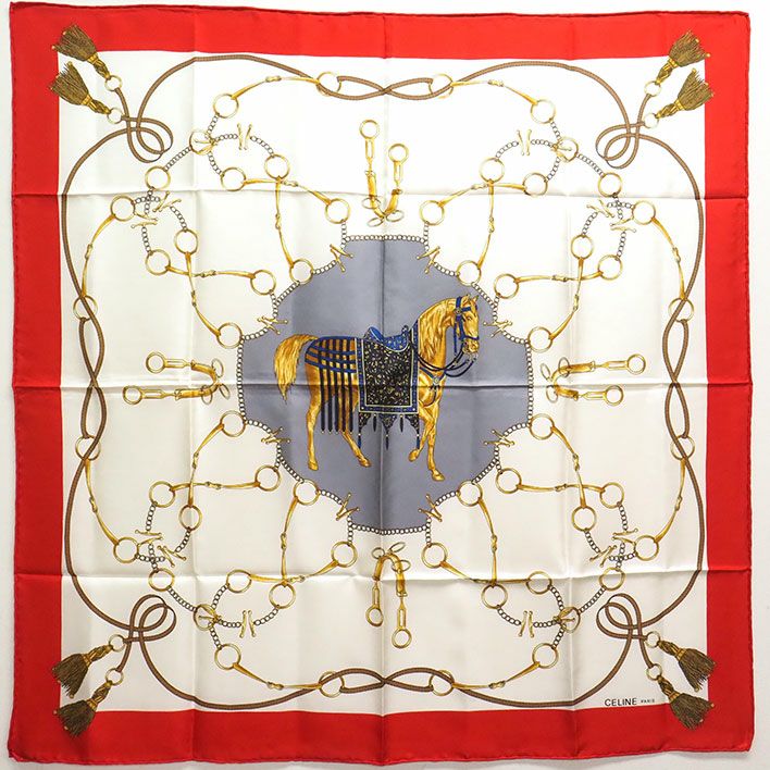 送料無料 / CELINE / セリーヌ 馬 チェーン 【レディーススカーフ】| 中古
