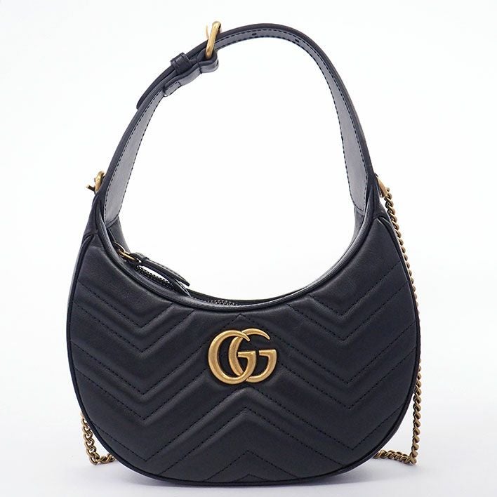 送料無料 / GUCCI / GGマーモント グッチ ハーフムーンシェイプ ミニバッグ アンティーク風ゴールド金具 GGマーモント レディース 【ショルダーバッグ】| 中古