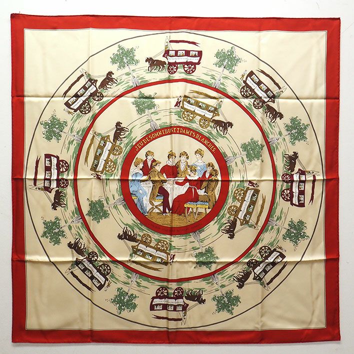 送料無料 / HERMES / カレ90 エルメス JEU DES OMNIBUS ET DAMES BLANCHES オムニバスと貴婦人たちの遊戯 カレ90 【レディーススカーフ】