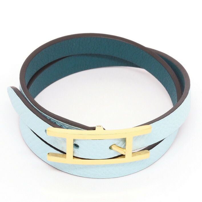 送料無料 / HERMES エルメス アピ3 2重巻き ペールブルー×ゴールドカラー【ブレスレット】【ジュエリー】