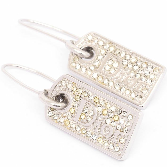 送料無料 / Christian Dior クリスチャン ディオール パヴェラインストーン ロゴ プレート フックタイプ【ピアス】【ジュエリー】
