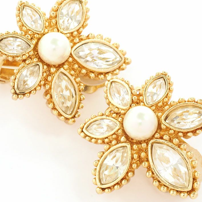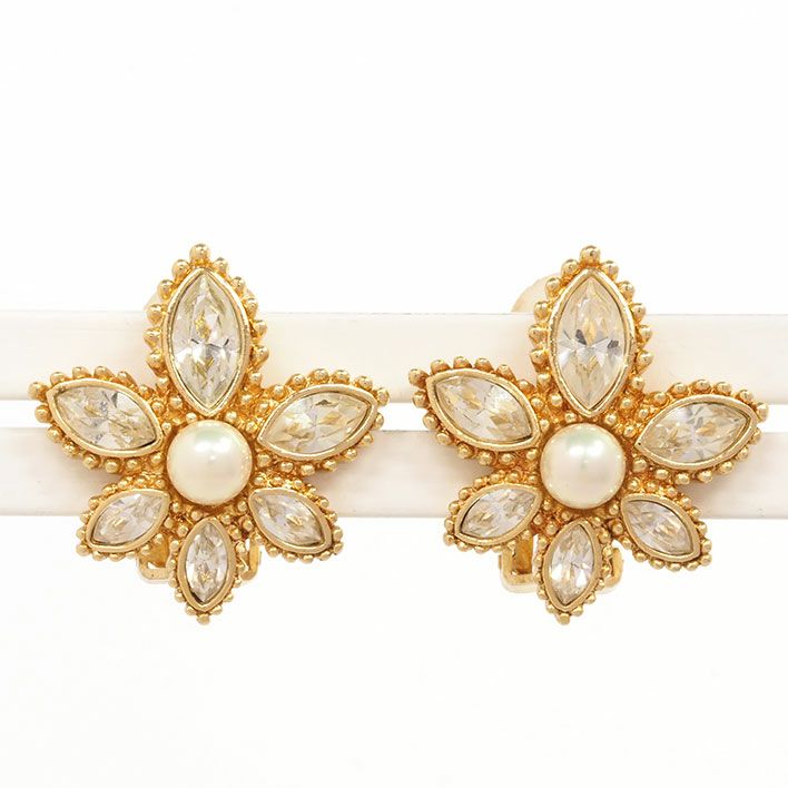 送料無料 / Christian Dior クリスチャン ディオール フラワーモチーフ ラインストーン クリップ型【イヤリング】【ジュエリー】