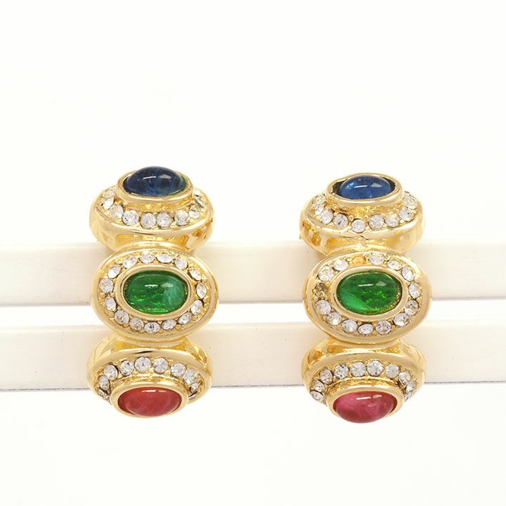 送料無料 / Christian Dior / レディース クリスチャン ディオール カラーストーン オーバルリンクフープ クリップタイプ 【イヤリング】【ジュエリー】