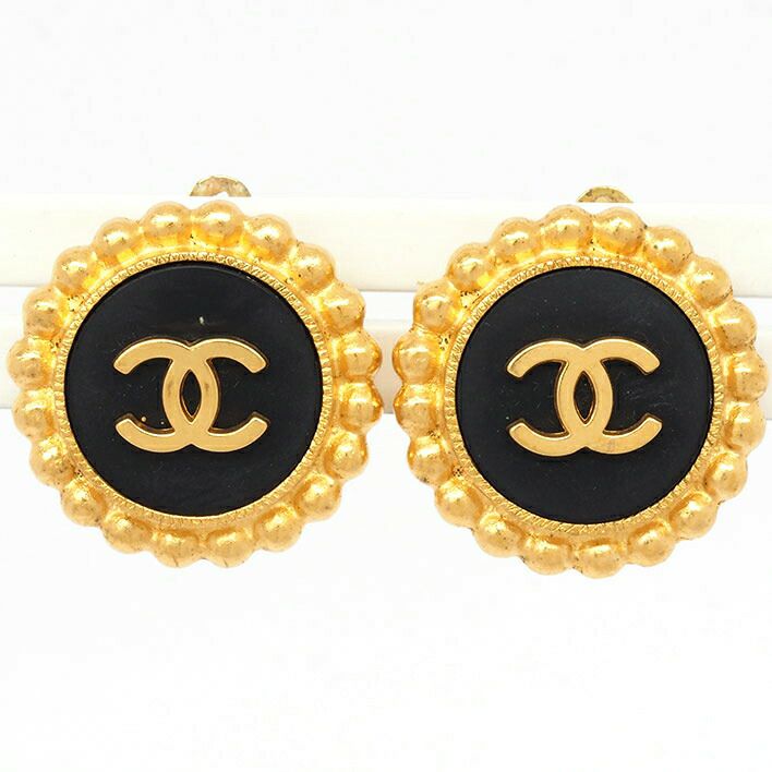 送料無料 / CHANEL シャネル ココマーク ブラック ラウンド ミルグレインフレーム【イヤリング】【ジュエリー】| 中古