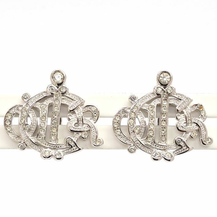 送料無料 / Christian Dior クリスチャン ディオール エンブレムロゴ ラインストーン【イヤリング】【ジュエリー】