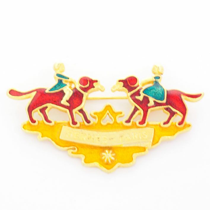 送料無料 / HERMES / 男女兼用 エルメス 犬 少年 少女 回転ピンタイプ ヴィンテージ エナメル/七宝 【ブローチ】【ジュエリー】| 中古