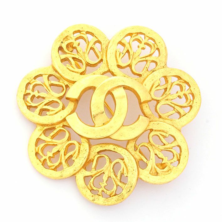 送料無料 / CHANEL / レディース シャネル ココマーク 透かし ラウンド ハートモチーフ 回転ピンタイプ 【ブローチ】【ジュエリー】| 中古