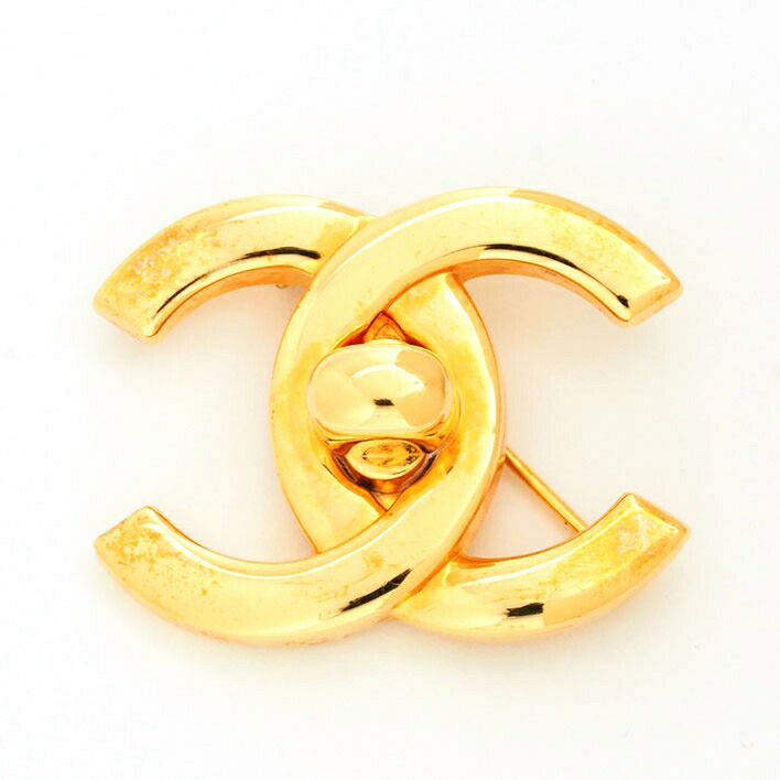 送料無料 / CHANEL シャネル ココマーク ターンロックモチーフ ゴールドカラー 回転ピン【ブローチ】【ジュエリー】| 中古