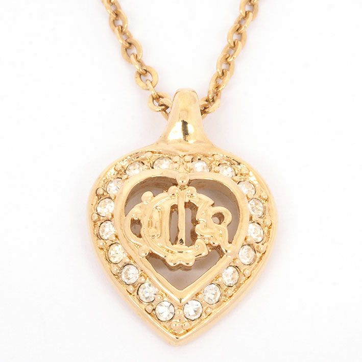 送料無料 / Christian Dior クリスチャン ディオール エンブレムロゴ ハートビジューフレーム ゴールドカラー【ペンダント】【ジュエリー】