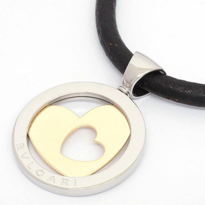 送料無料 / BVLGARI ブルガリ トンドハート レザー チョーカー K18YG/ステンレススチール【ペンダント】【ジュエリー】