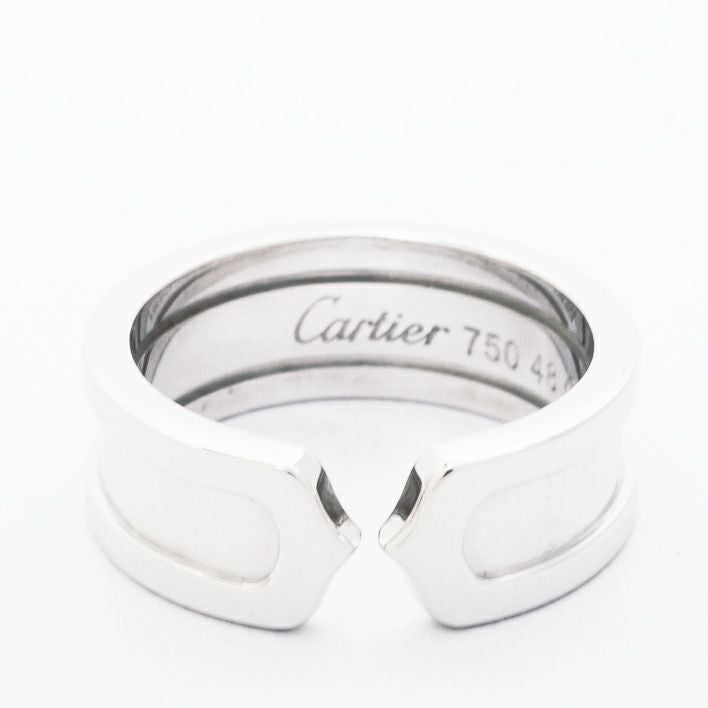 送料無料 / Cartier 【中古】カルティエ 2C C2 ドゥーブルC ロゴリング 18金ホワイトゴールド 48【指輪】 ジュエリー