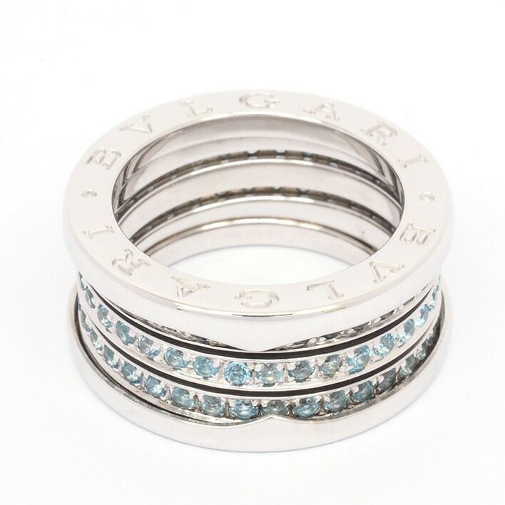 送料無料 / BVLGARI ブルガリ ビーゼロワン パヴェアクアマリン 3バンドリング K18WG 54【指輪】【ジュエリー】
