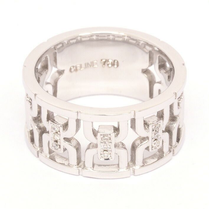 送料無料 / CELINE セリーヌ 透かし ブラゾンモチーフ パヴェダイヤモンド ワイドリング K18WG 12号【指輪】【ジュエリー】