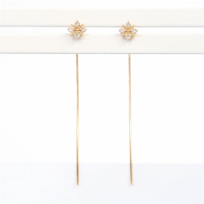 送料無料 / 4℃ ヨンドシー フラワーモチーフ 4Pダイヤ K10YG【ピアス】【ジュエリー】