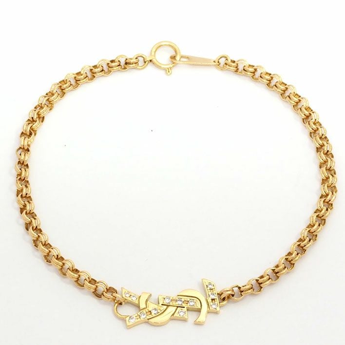 送料無料 / Yves Saint Laurent / 男女兼用 イヴ サンローラン YSLロゴ 12Pダイヤ K18YG ダイヤモンド 【ブレスレット】【ジュエリー】| 中古
