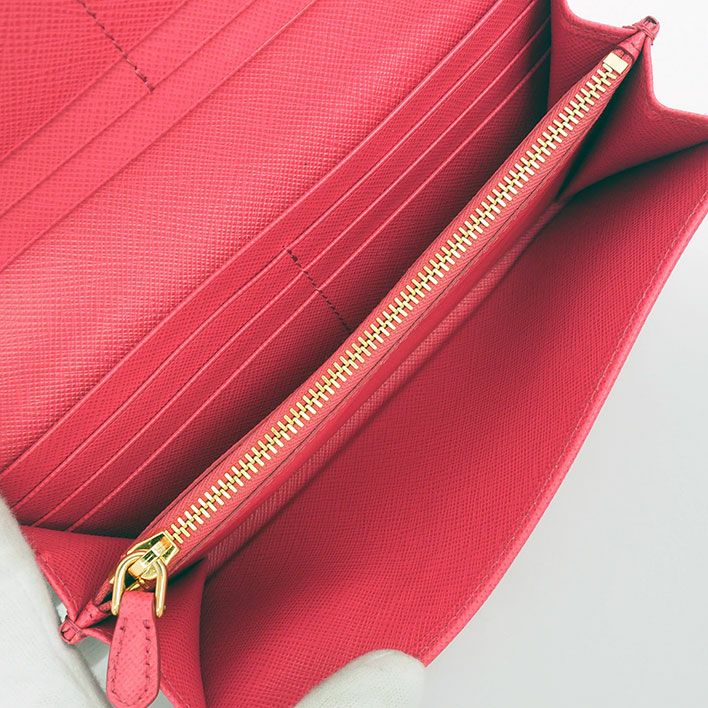 プラダを代表的するサフィアーノレザーは型押し加工を施した頑丈な牛革を使用し、耐久性と防汚性に優れている点が特徴です。