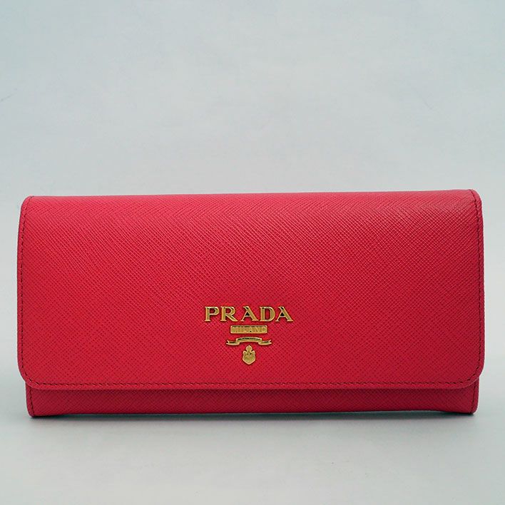 送料無料 / PRADA / サフィアーノメタル プラダ パスケース付き 二つ折り フラップウォレット ゴールドロゴ サフィアーノメタル 1MH132 レディース【長財布】
