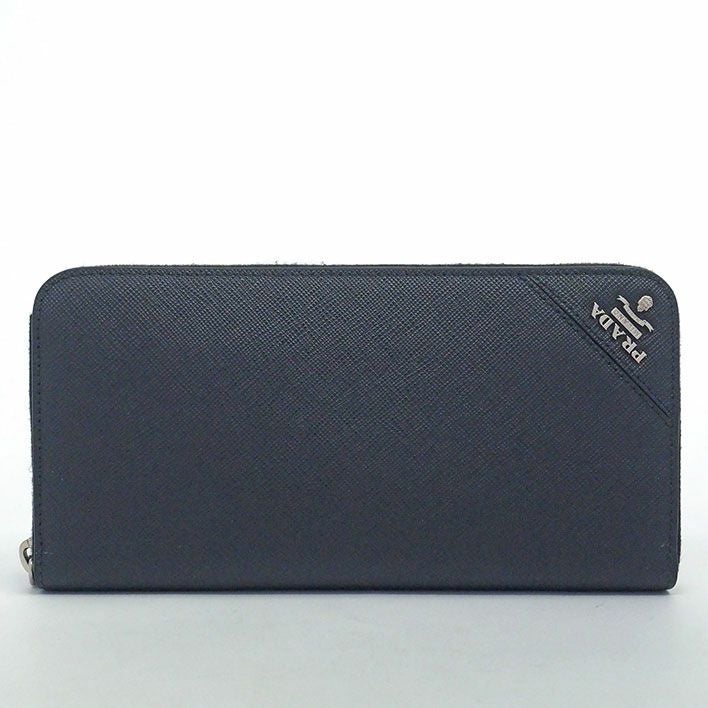 送料無料 / PRADA / サフィアーノ プラダ ジップアラウンドウォレット シルバー金具 ロゴ サフィアーノ メンズ 【長財布(小銭入れあり)】