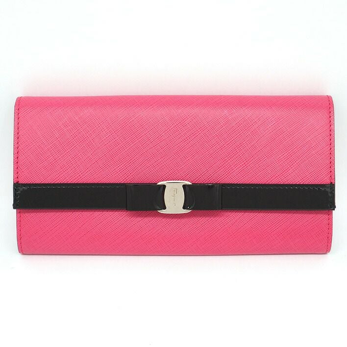 送料無料 / Salvatore Ferragamo / ヴェラ サルヴァトーレ フェラガモ リボンモチーフ バイカラー シルバー金具 ヴェラ レディース【長財布】
