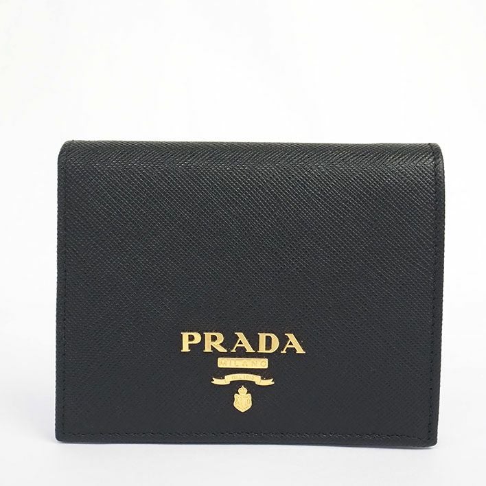 送料無料 / PRADA / サフィアーノ プラダ メタルロゴ サフィアーノ レディース 【二つ折り財布(小銭入れあり)】| 中古