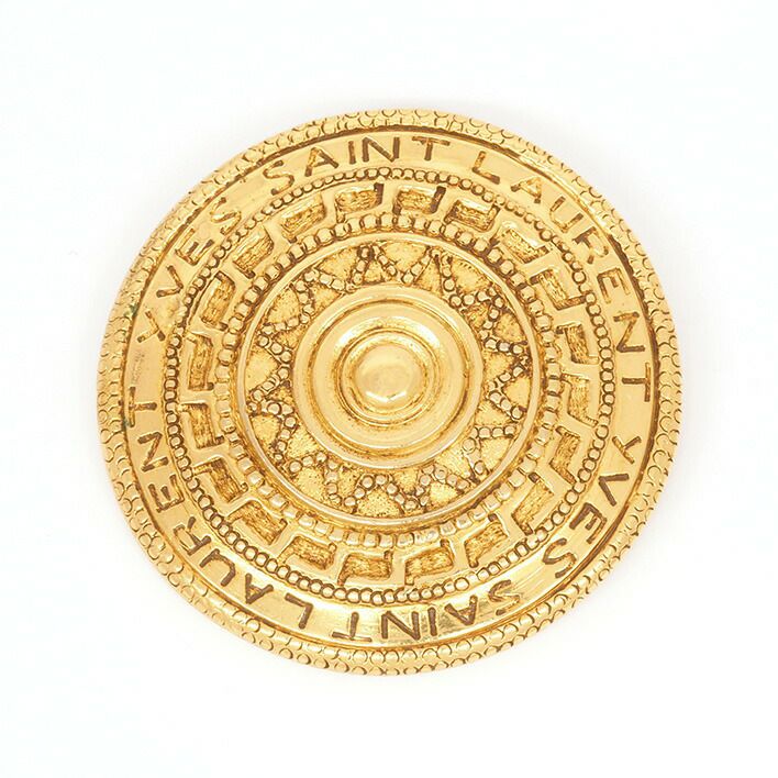 送料無料 / Yves Saint Laurent イヴ サンローラン ロゴ レリーフ アンティーク ゴールドカラー 回転ピン式【ブローチ】【ジュエリー】