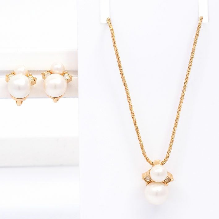 送料無料 / Christian Dior クリスチャン ディオール CDロゴ ラインストーン ネックレス 2点セット【ピアス】【ジュエリー】