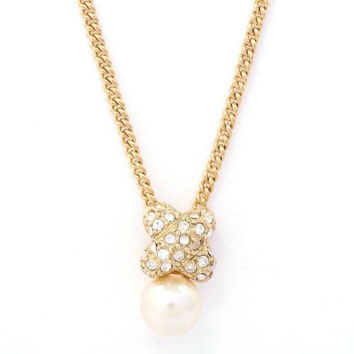 送料無料 / Christian Dior クリスチャン ディオール 1Pパールトップ ラインストーン ヴィンテージ【ネックレス】【ジュエリー】