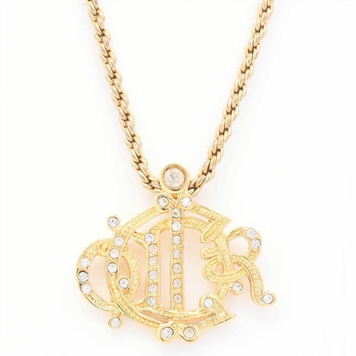 送料無料 / Christian Dior クリスチャン ディオール エンブレムロゴ ラインストーン【ネックレス】【ジュエリー】