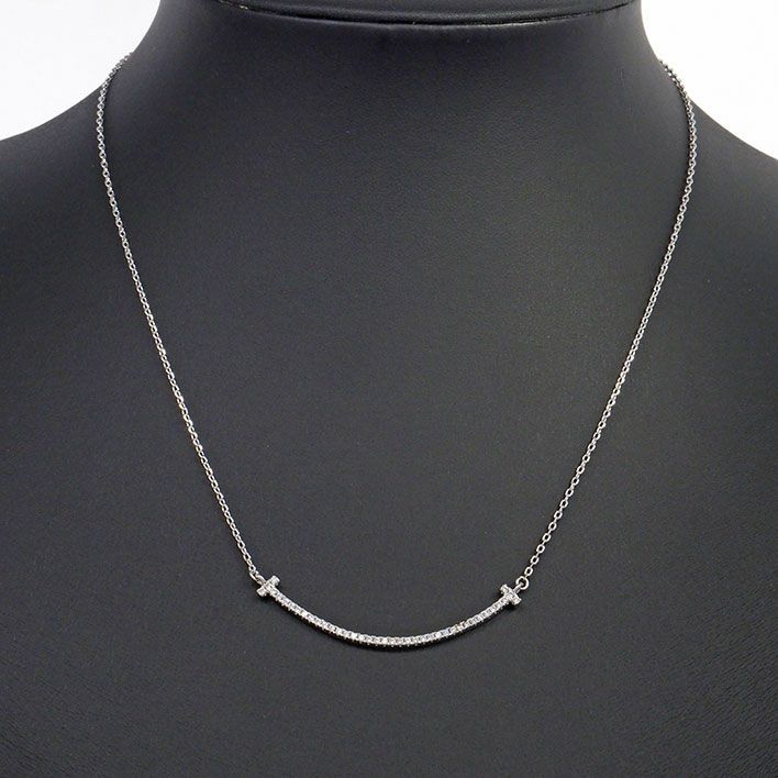 ティファニー メレ Tスマイル ペンダント K18WG【ネックレス】【ジュエリー】